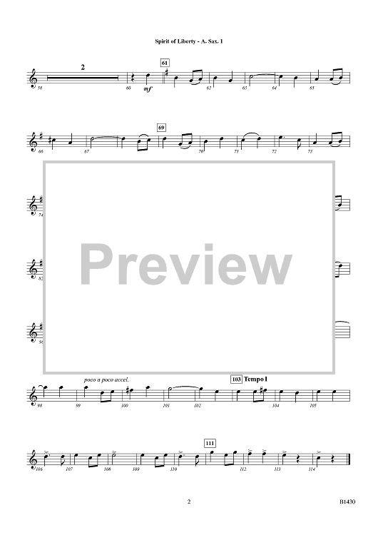 Digital Sheet Music for Spirit of Liberty - Concert March - Eb Alto Sax 1 by William Owens scored for Young Band; id:415318