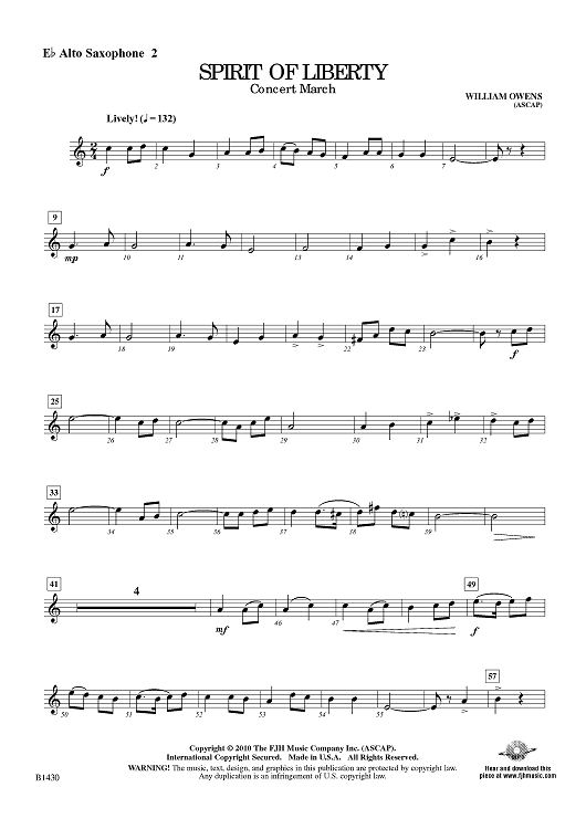 "Spirit of Liberty - Concert March - Eb Alto Sax 2" Sheet Music by William Owens
