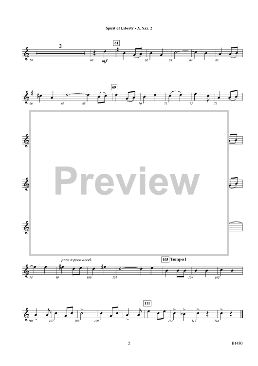 Digital Sheet Music for Spirit of Liberty - Concert March - Eb Alto Sax 2 by William Owens scored for Young Band; id:415319