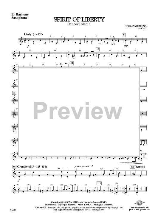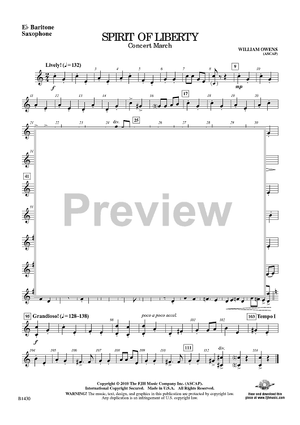 "Spirit of Liberty - Concert March - Eb Baritone Sax" Sheet Music by William Owens