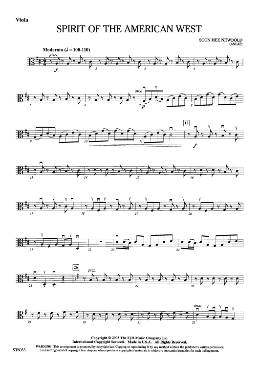 "Spirit of the American West - Viola" Sheet Music by Soon Hee Newbold