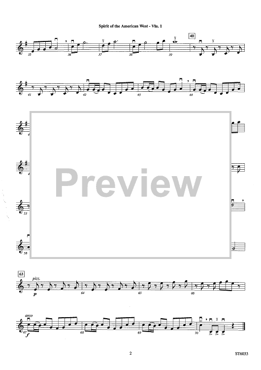 Digital Sheet Music for Spirit of the American West - Violin 1 by Soon Hee Newbold scored for String Orchestra; id:441911