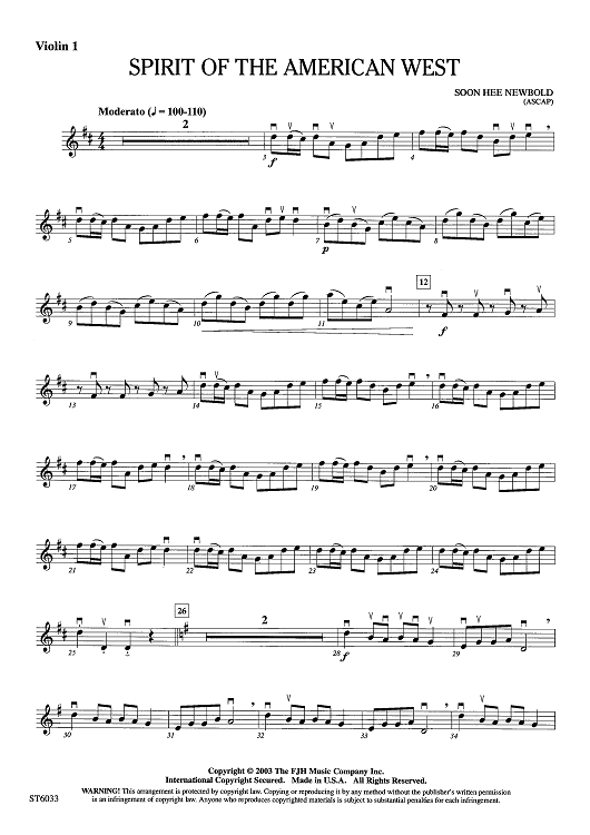 "Spirit of the American West - Violin 1" Sheet Music by Soon Hee Newbold