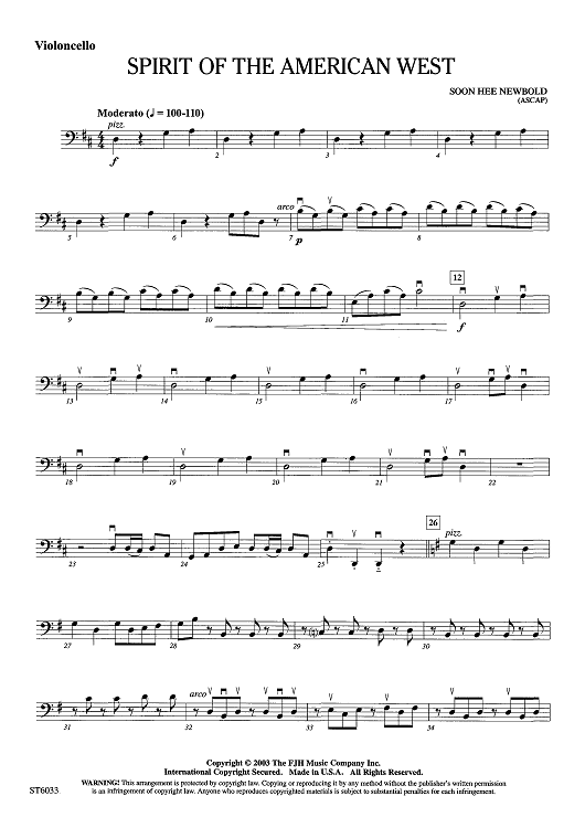 Digital Sheet Music for Spirit of the American West - Violoncello by Soon Hee Newbold scored for String Orchestra; id:441915