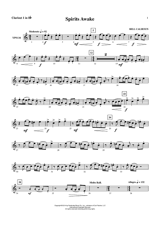 "Spirits Awake - Clarinet 1 in Bb" Sheet Music by Bill Calhoun