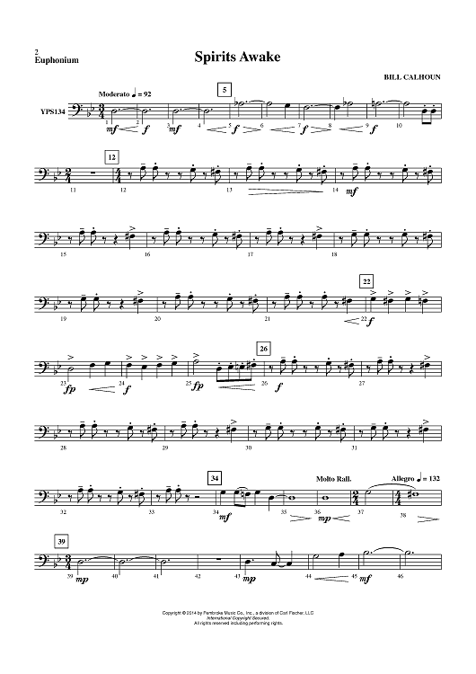 "Spirits Awake - Euphonium BC" Sheet Music by Bill Calhoun