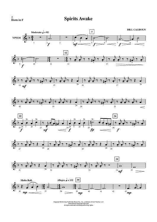 "Spirits Awake - Horn in F" Sheet Music by Bill Calhoun