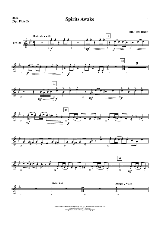 "Spirits Awake - Oboe (Opt. Flute 2)" Sheet Music by Bill Calhoun