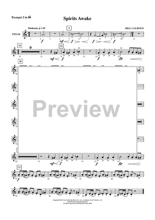 "Spirits Awake - Trumpet 2 in Bb" Sheet Music by Bill Calhoun