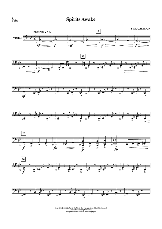 Digital Sheet Music for Spirits Awake - Tuba by Bill Calhoun scored for Concert Band; id:452643