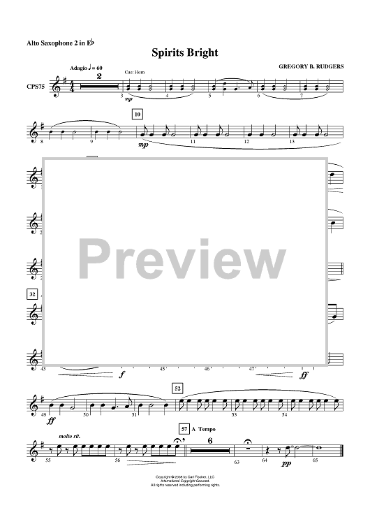 "Spirits Bright - Alto Sax 2" Sheet Music by Gregory B. Rudgers