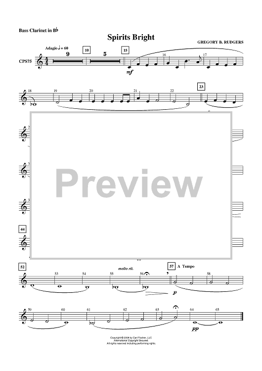 "Spirits Bright - Bass Clarinet in B-flat" Sheet Music by Gregory B. Rudgers