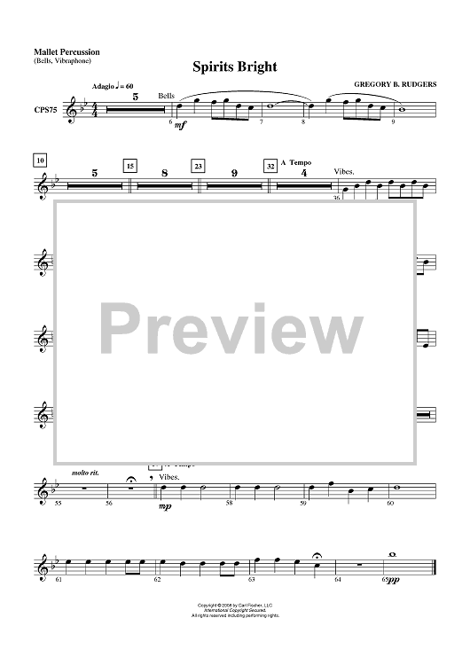 Digital Sheet Music for Spirits Bright - Mallet Percussion by Gregory B. Rudgers scored for Concert Band; id:408686