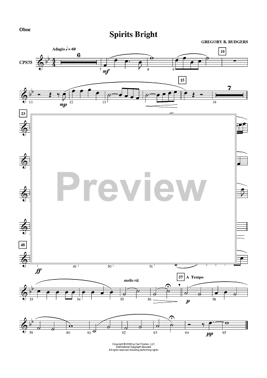 "Spirits Bright - Oboe" Sheet Music by Gregory B. Rudgers
