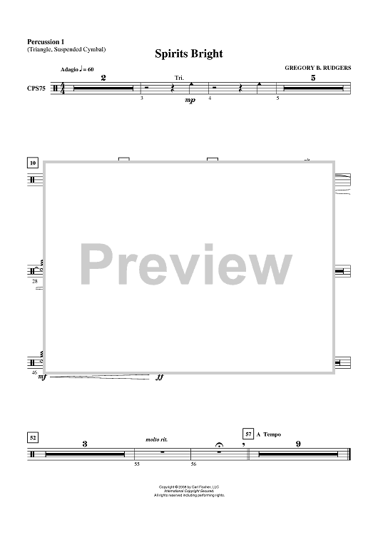 "Spirits Bright - Percussion 1" Sheet Music by Gregory B. Rudgers