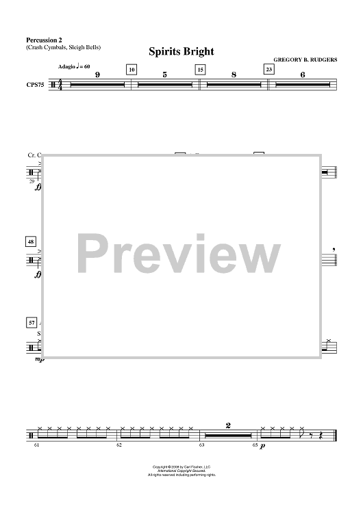 "Spirits Bright - Percussion 2" Sheet Music by Gregory B. Rudgers