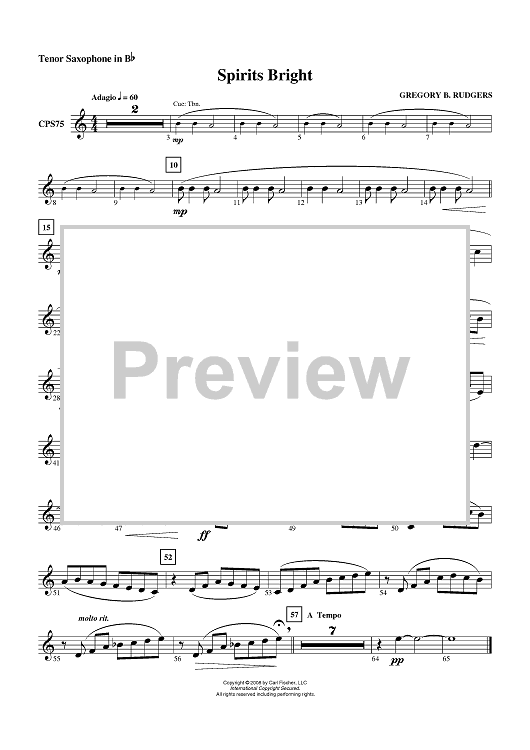 "Spirits Bright - Tenor Sax" Sheet Music by Gregory B. Rudgers