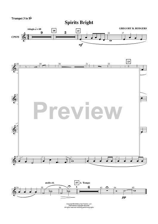 "Spirits Bright - Trumpet 3 in B-flat" Sheet Music by Gregory B. Rudgers