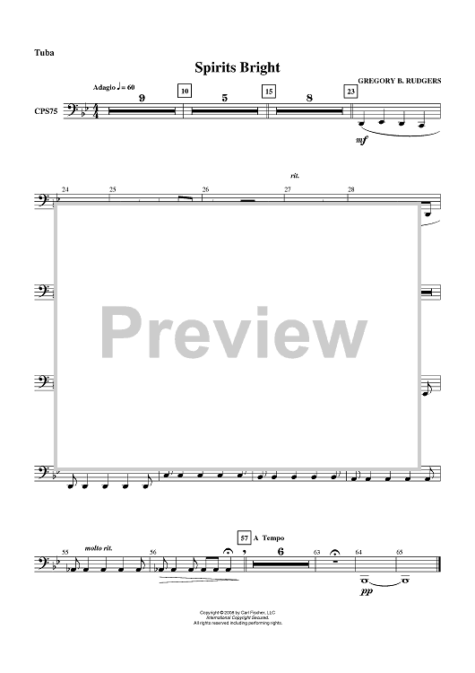 "Spirits Bright - Tuba" Sheet Music by Gregory B. Rudgers