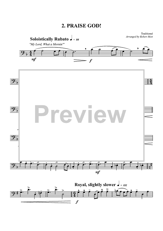 Digital Sheet Music for Spiritual Medley No.1 by Traditional, Robert Mott scored for Trombone; id:409960