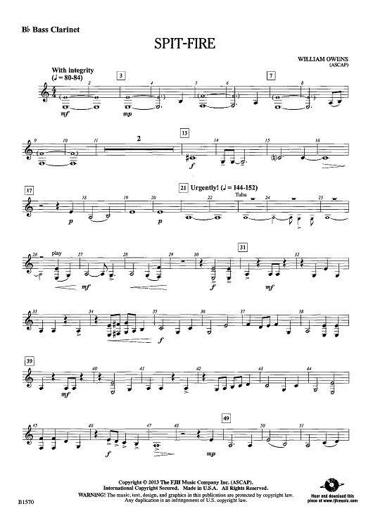Digital Sheet Music for Spit-Fire - Bb Bass Clarinet by William Owens scored for Concert Band; id:439403