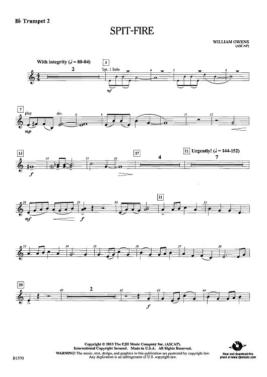 "Spit-Fire - Bb Trumpet 2" Sheet Music by William Owens
