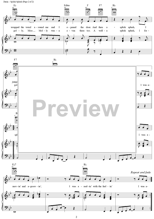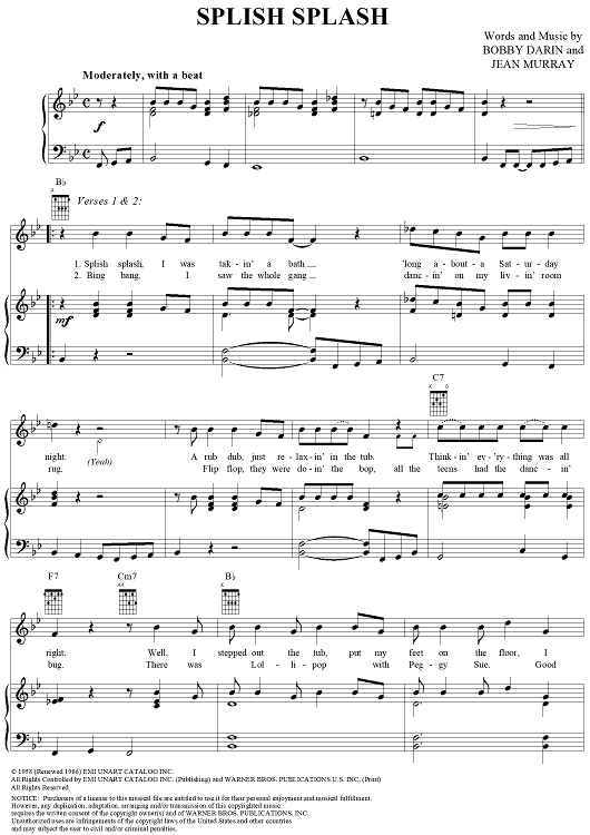 Digital Sheet Music for Splish Splash by Bobby Darin, Jean Murray scored for Piano/Vocal/Chords; id:272920