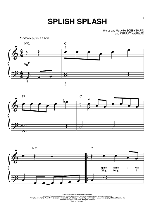 Digital Sheet Music for Splish Splash by Bobby Darin, Murray the K scored for Big Note Piano; id:387879