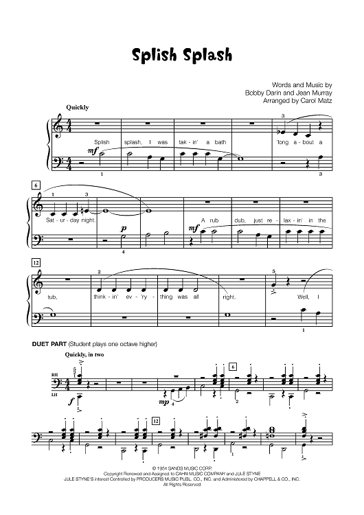 Digital Sheet Music for Splish Splash by Bobby Darin, Jean Murray, Carol Matz scored for Piano; id:451456