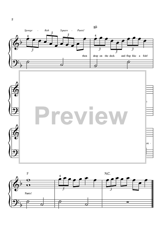 Digital Sheet Music for SpongeBob SquarePants Theme Song by Mark Harrison, Steve Hillenburg, Blaise Smith scored for Big Note Piano; id:372819