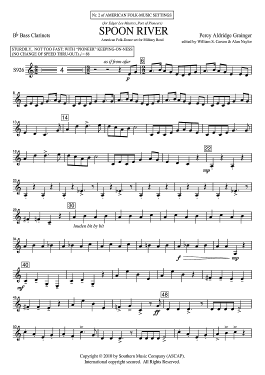 "Spoon River - Bb Bass Clarinet" Sheet Music by Percy Grainger