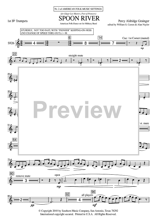 "Spoon River - Bb Trumpet 1" Sheet Music by Percy Grainger