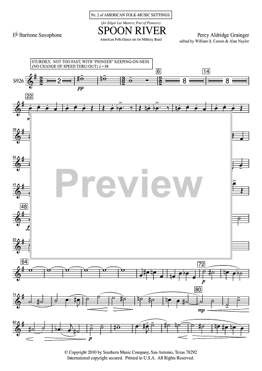 "Spoon River - Eb Baritone Sax" Sheet Music by Percy Grainger