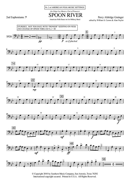 "Spoon River - Euphonium 2 BC" Sheet Music by Percy Grainger