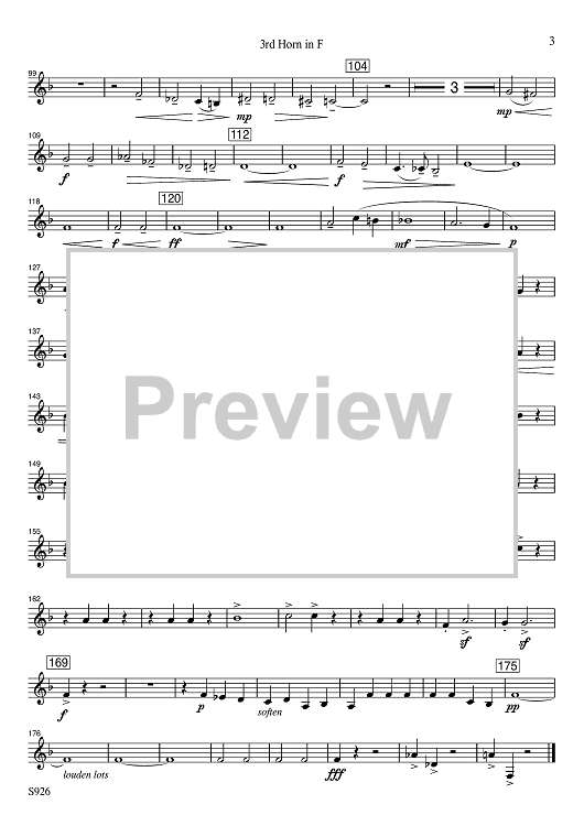 Digital Sheet Music for Spoon River - F Horn 3 by Percy Grainger, William S. Carson, Alan Naylor scored for Concert Band; id:502854