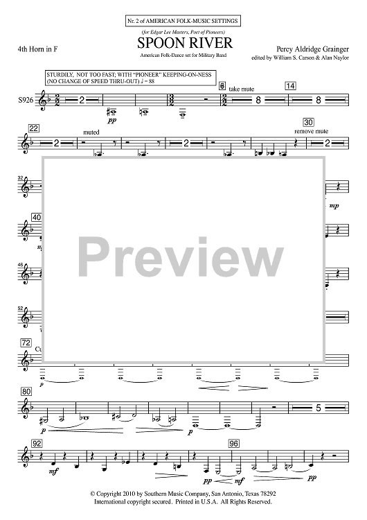 Digital Sheet Music for Spoon River - F Horn 4 by Percy Grainger, William S. Carson, Alan Naylor scored for Concert Band; id:502855