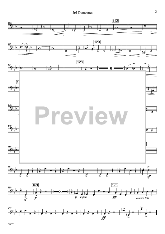 Digital Sheet Music for Spoon River - Trombone 3 (Bass Trombone) by Percy Grainger, William S. Carson, Alan Naylor scored for Concert Band; id:502858
