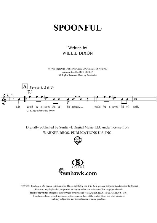 "Spoonful" Sheet Music by Willie Dixon