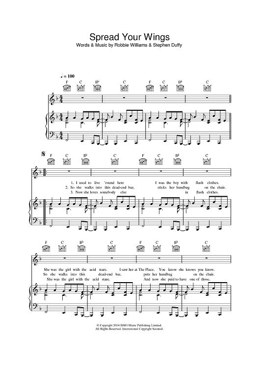 Digital Sheet Music for Spread Your Wings by Robbie Williams, Stephen Duffy scored for Piano/Vocal/Chords; id:387496