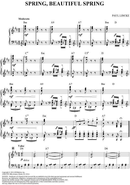 "Spring, Beautiful Spring" Sheet Music by Paul Lincke