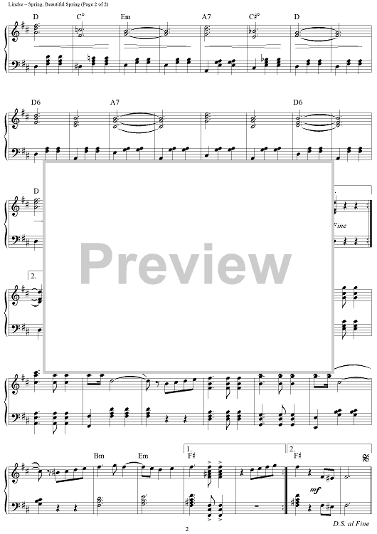 Digital Sheet Music for Spring, Beautiful Spring by Paul Lincke scored for Piano Solo; id:250956