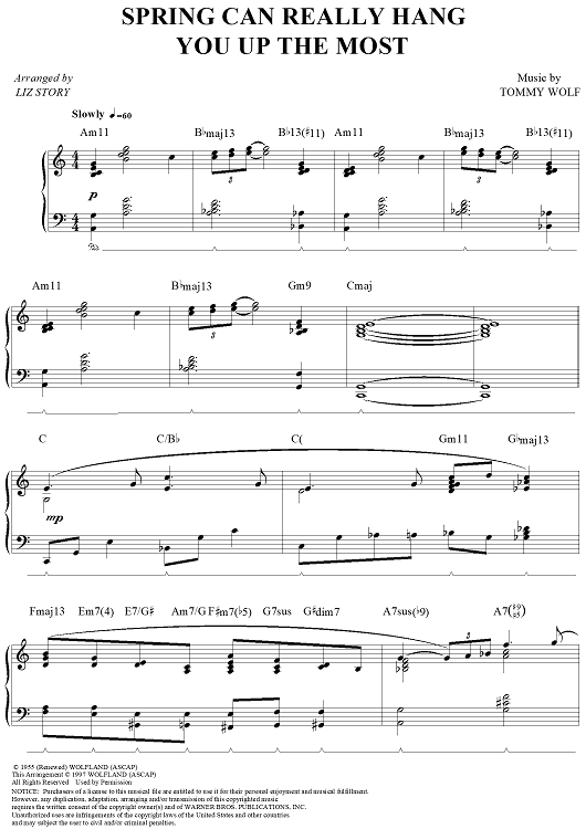 Digital Sheet Music for Spring Can Really Hang You Up the Most by Liz Story, Tommy Wolf scored for Piano Solo; id:112803
