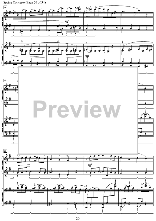 "Spring Concerto In Four Movements for Solo Piano with Piano Accompaniment" Sheet Music by Alexander Peskanov