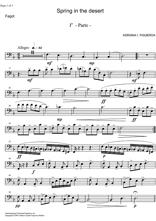 "Spring in the Desert - Bassoon" Sheet Music by Adriana Isabel Figueroa Mañas