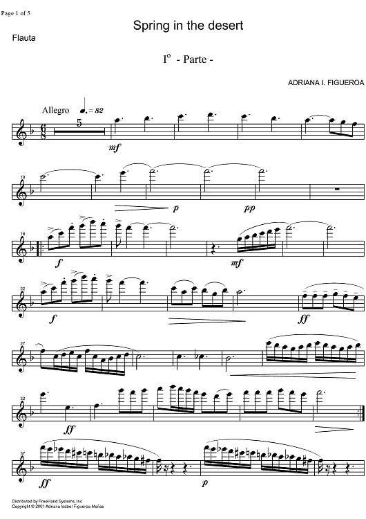 "Spring in the Desert - Flute" Sheet Music by Adriana Isabel Figueroa Mañas