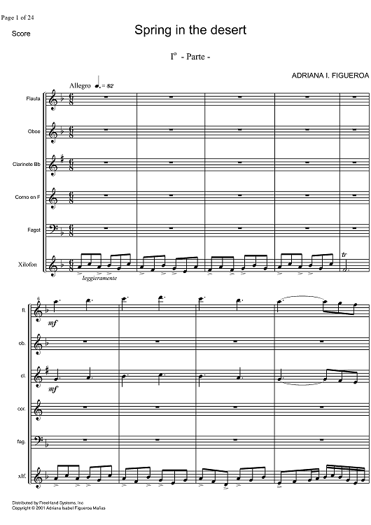 Digital Sheet Music for Spring in the Desert - Score by Adriana Isabel Figueroa Mañas scored for Wind Quintet/Xylophone; id:332309