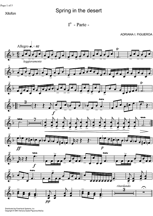 "Spring in the Desert - Xylophone" Sheet Music by Adriana Isabel Figueroa Mañas