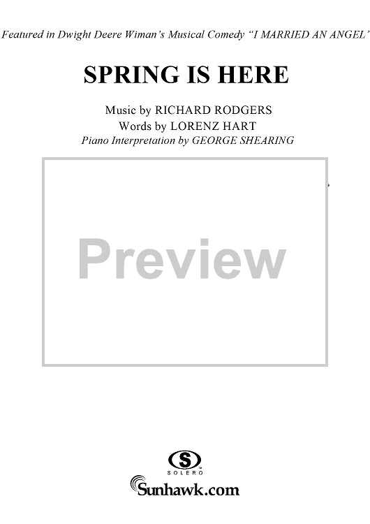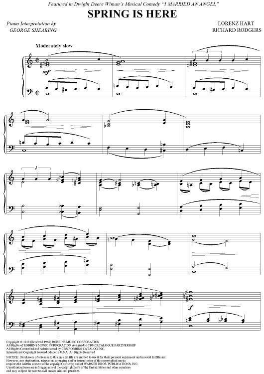 Digital Sheet Music for Spring Is Here by George Shearing, Richard Rodgers, Lorenz Hart scored for Piano Solo; id:115804