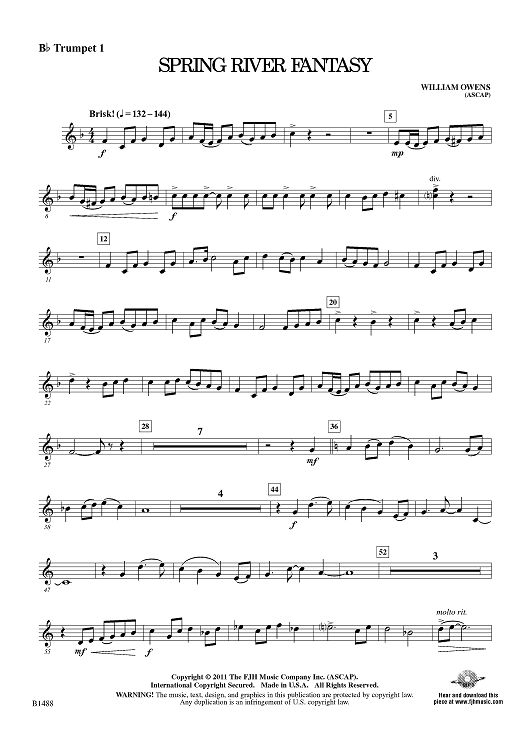 "Spring River Fantasy - Bb Trumpet 1" Sheet Music by William Owens