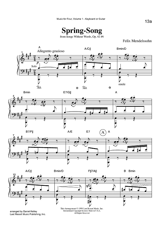 Digital Sheet Music for Spring-Song - from Songs Without Words, Op. 62 #6 - Keyboard or Guitar by , Felix Mendelssohn, Daniel Kelley scored for Instrumental Quartet; id:423587